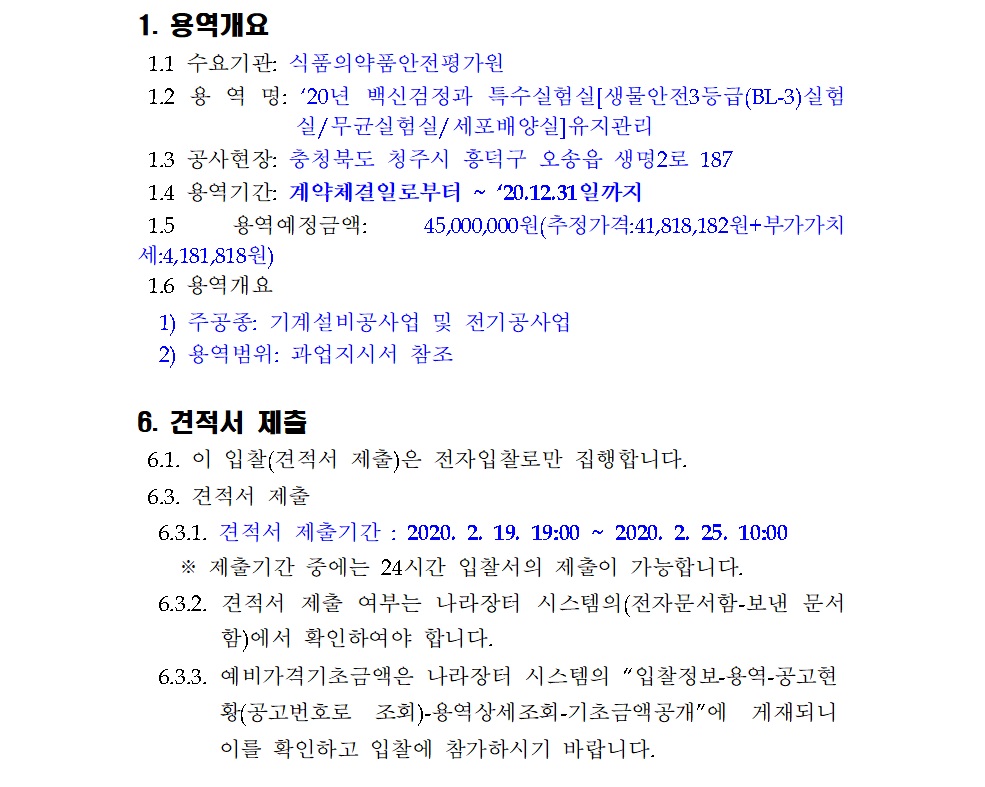 [나라장터] 생물안전3등급(BL-3)실험실/무균시험실/세포배양실 유지관리 (2020.02.19~25)