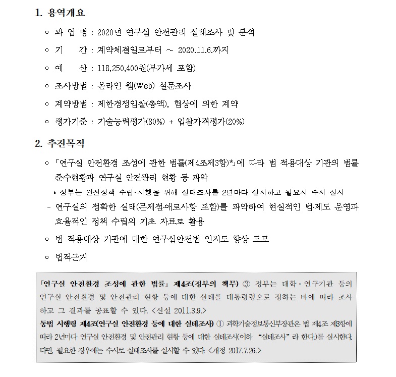 [나라장터] 2020년 연구실 안전관리 실태조사 및 분석 (긴급공고) (2020.03.19 ~ 2020.03.23)