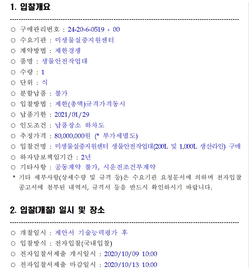 [나라장터] 미생물실증지원센터 생물안전작업대 구매 (~10.13) 작성자 최고관리자 조회 250 작성일 2020-09-22 안녕하세요. 한국생물안전협회입니다. 미생물실증지원센터 생물안전작업대 구매 공고를 안내드립니다. [나라장터 바로가기] 감사합니다. 이전글 다음글 목록