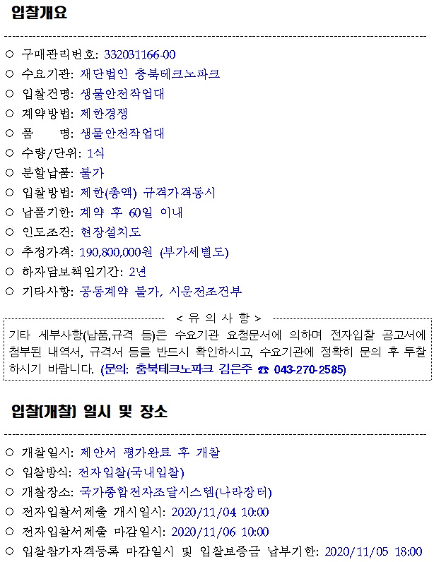 [나라장터] 생물안전작업대 구매 (~11.6) 작성자 최고관리자 조회 280 작성일 2020-10-27 안녕하세요. 한국생물안전협회입니다. 재단법인 충북테크노파크 생물안전작업대 구매입찰 공고를 안내드립니다. 감사합니다. [나라장터 바로가기] 이전글 다음글 목록