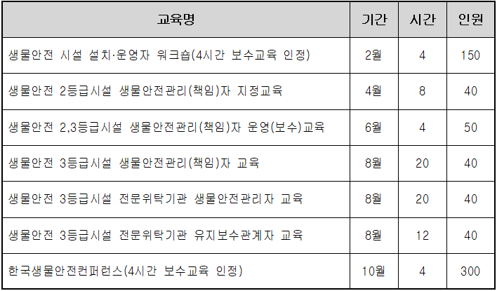 생물안전 지정 및 보수교육은 언제 받을 수 있나요?