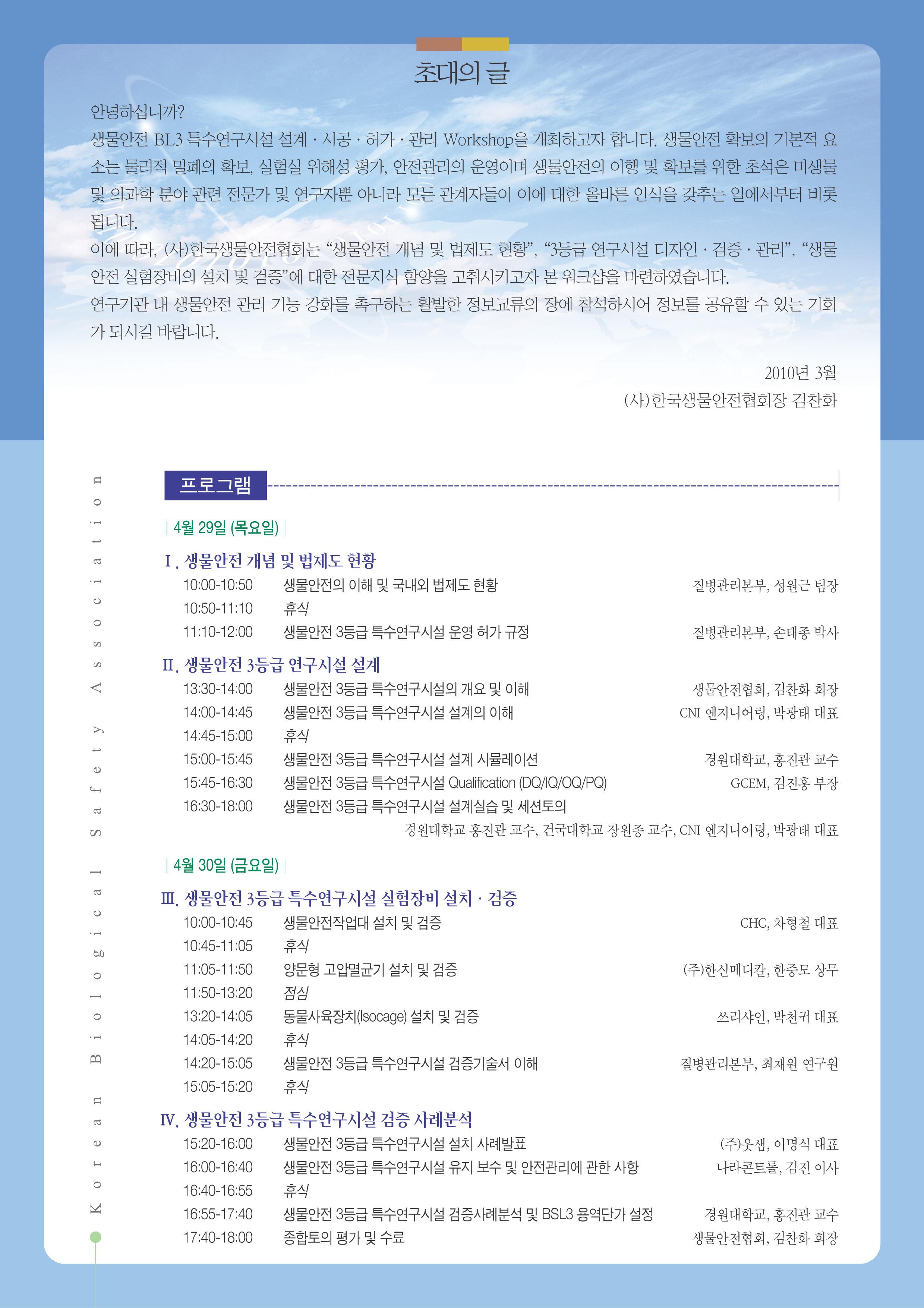 2010 생물안전 BL3 특수연구시설 설계·시공·허가·관리 워크샵