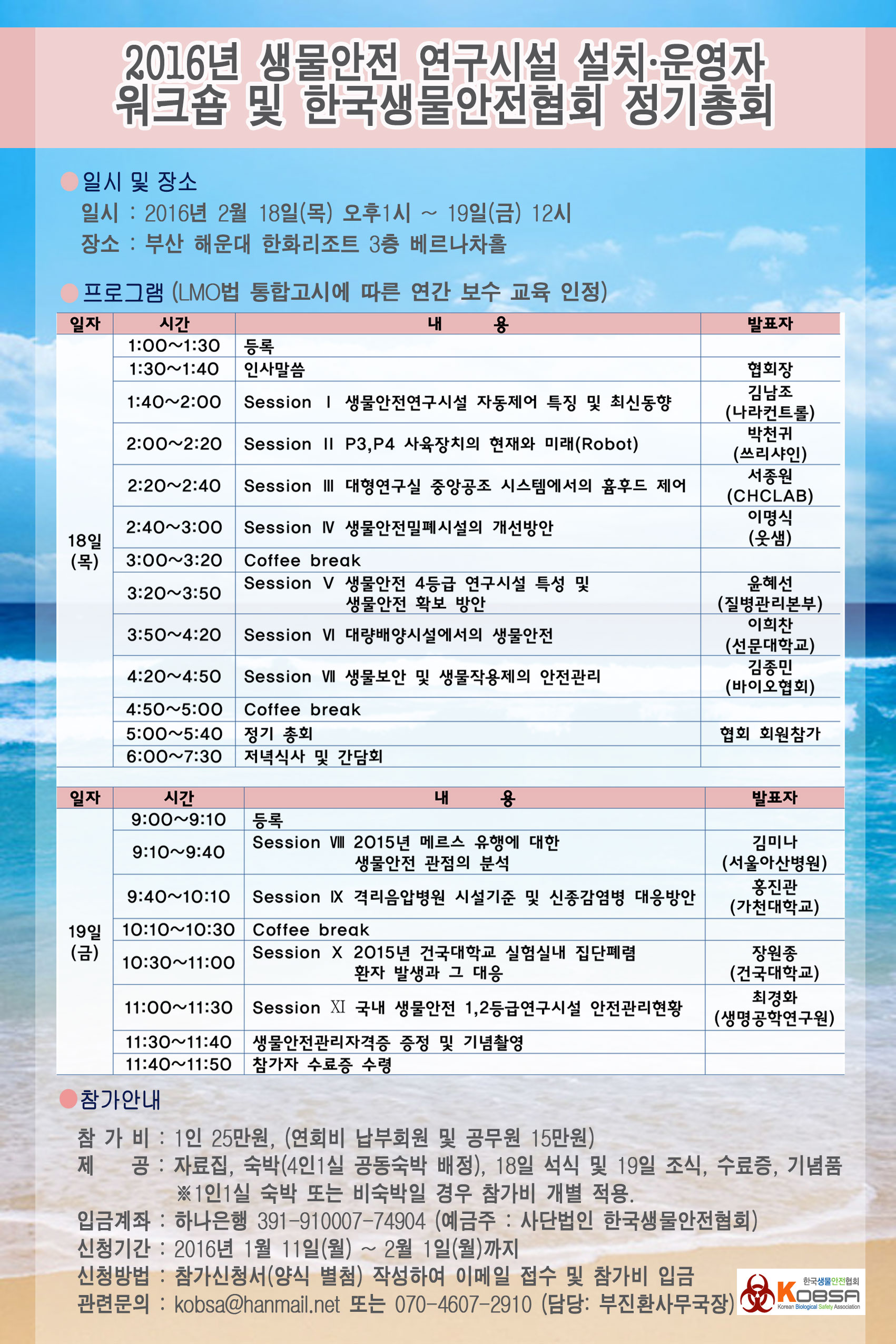 [필독]2016년 생물안전워크숍 및 정기총회 참가안내