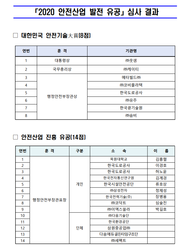 웃샘, 2020 안전산업 발전 유공 '대한민국 안전기술 대통령상' 선정 작성자 최고관리자 조회 1,618 작성일 2020-11-04 안녕하세요. 한국생물안전협회입니다. 2020 안전산업 발전 유공 심사에서 (주)웃샘이 '대한민국 안전기술 대통령상'에 선정되었습니다. [관련 페이지 바로가기] 이전글 다음글 목록