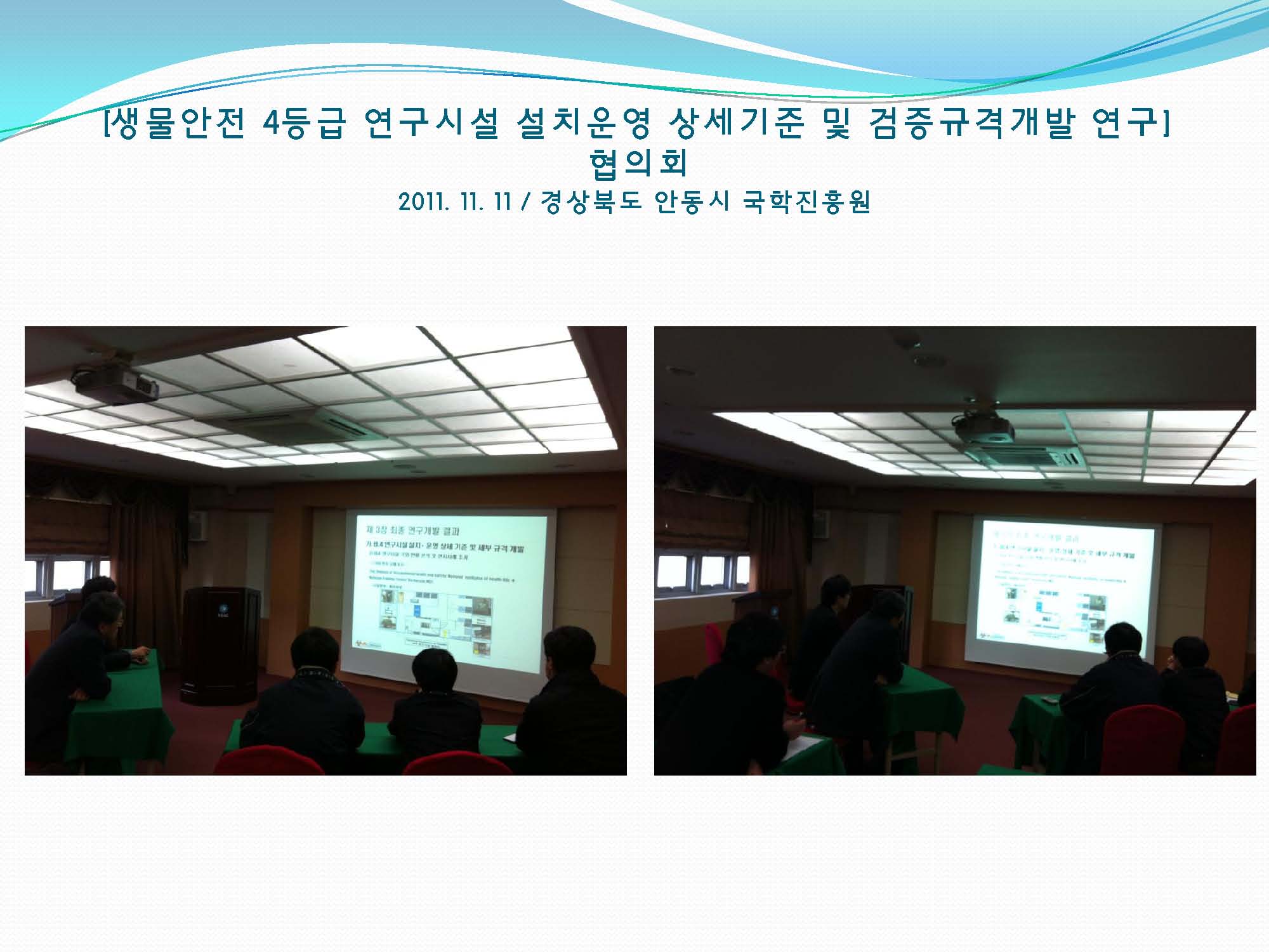 [생물안전 4등급 연구시설 설치 운영 상세기준 및 검증규격 개발연구] 협의회 작성자 KOBSA 조회 6,571 작성일 2011-11-24 2011년 11월 11일에 경북 안동시 국학진흥원에서 개최되었던[생물안전 4등급 연구시설 설치 운영 상세기준 및 검증규격 개발연구] 과제 관련협의회가 아래와 같이 진행되었습니다. 이전글 다음글 목록