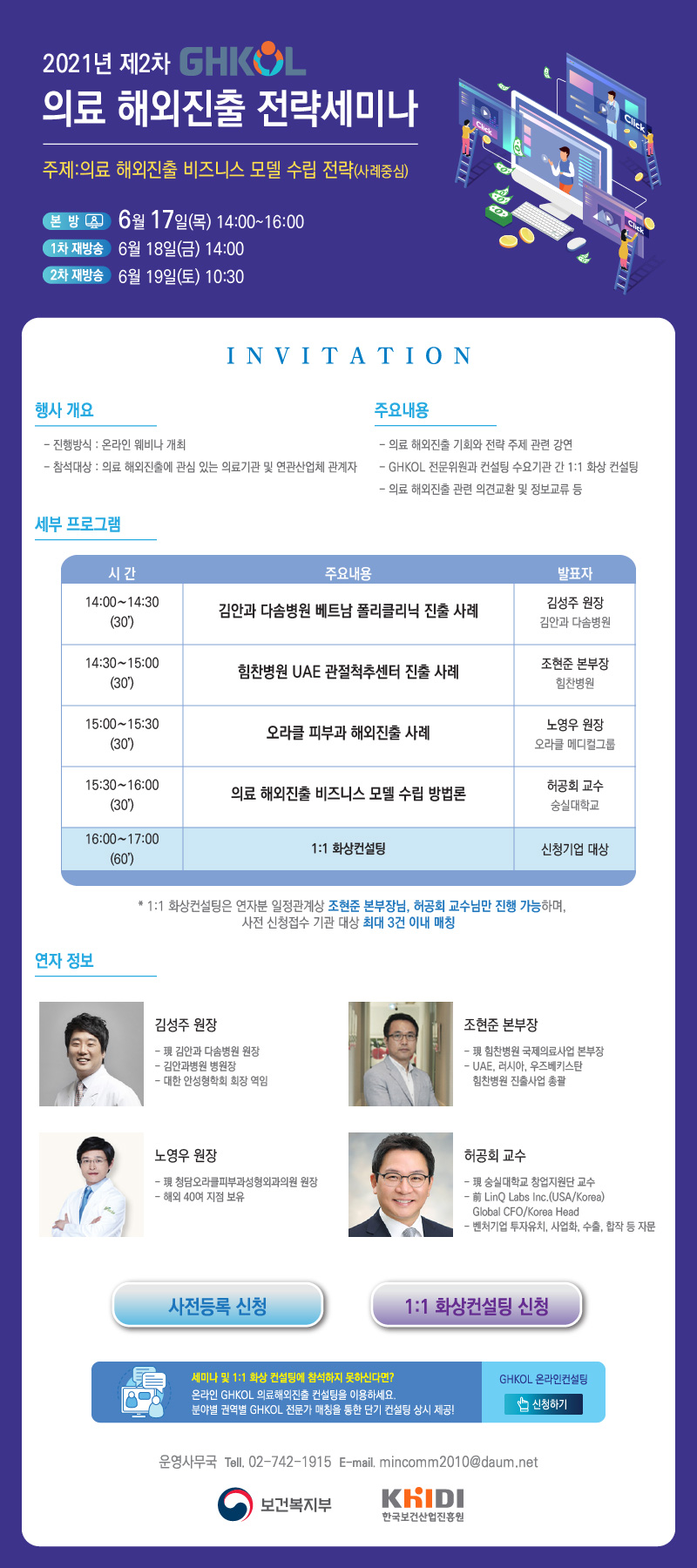 안녕하세요. 한국생물안전협회입니다. 제2차 GHKOL 세미나 '의료 해외진출 비즈니스 모델 수립 전략' 을 안내드립니다. 자세한 사항은 한국보건산업진흥원 홈페이지(링크 바로가기)에서 확인 바랍니다.