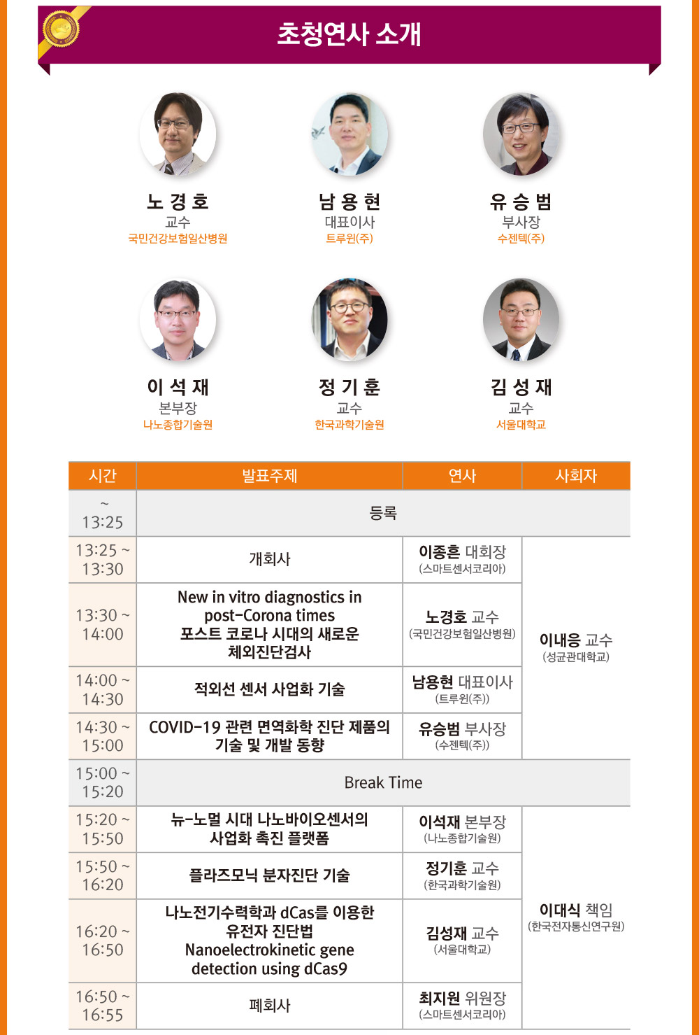 스마트센서코리아 심포지엄(뉴-노멀 시대 바이오·헬스케어 분야 첨단센서의 산업적 이슈) (7.8) 작성자 홈페이지 관리자 조회 1,508 작성일 2021-07-01 자세한 사항은 해당 홈페이지(링크 바로가기) 참고 바랍니다. 이전글 다음글 목록