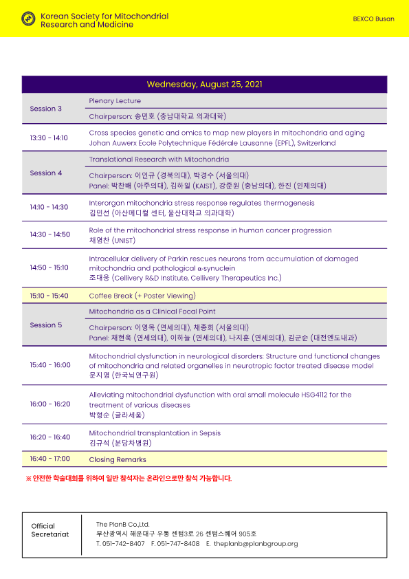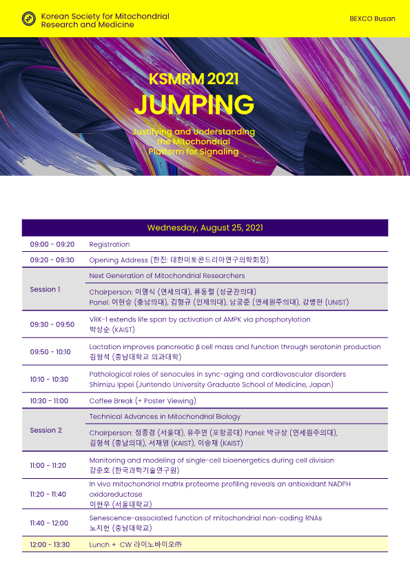 제15회 대한미토콘드리아연구의학회 정기 학술대회 (KSMRM 2021) (8.25 개최) 작성자 홈페이지 관리자 조회 1,350 작성일 2021-07-28 첨부파일 KSMRM2021 Circular.pdf 이전글 다음글 목록