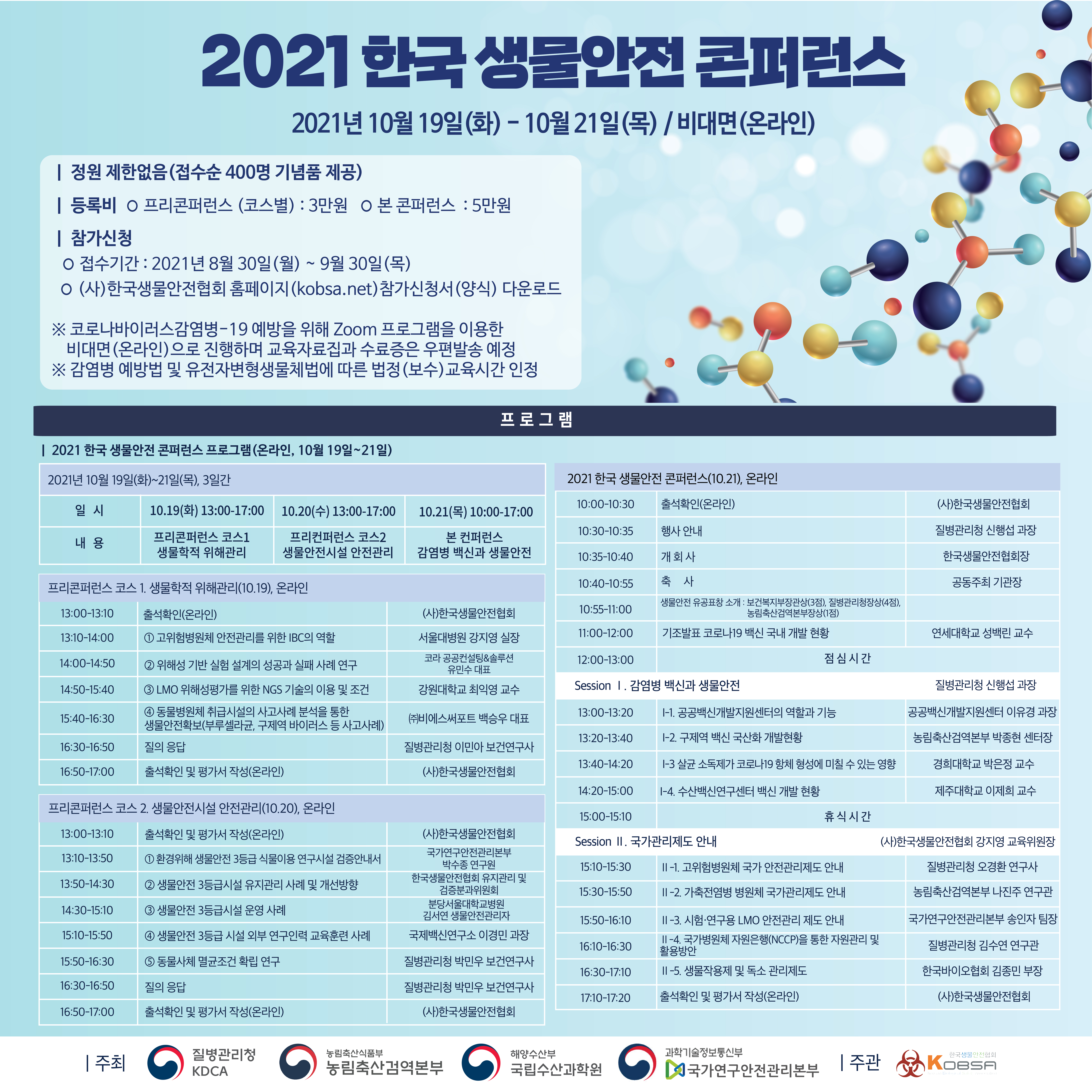 2021 한국 생물안전 콘퍼런스 비대면(온라인) 개최 안내
