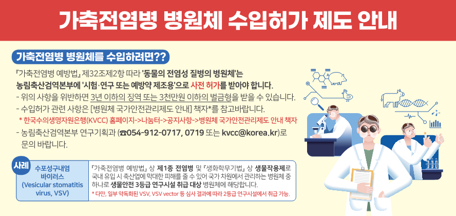 [농림축산검역본부] 가축전염병 병원체 수입허가 제도 안내 작성자 홈페이지 관리자 조회 1,166 작성일 2021-12-30 첨부파일 가축전염병 병원체 수입허가제도 안내-카드뉴스-최종본.pdf 이전글 다음글 목록