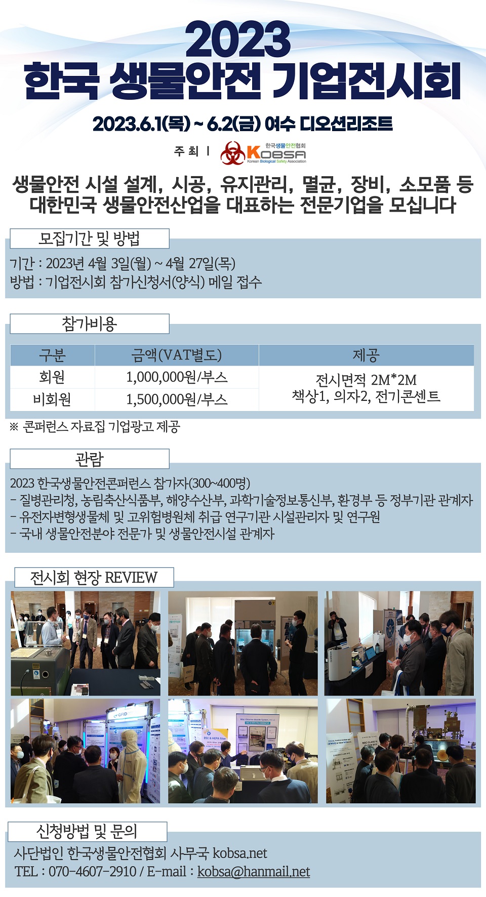 2023 한국생물안전기업전시회(6.1-6.2) (~4.27까지 접수)