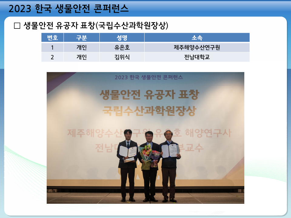 2023 한국 생물안전 콘퍼런스(6.1-2, 여수) 결과