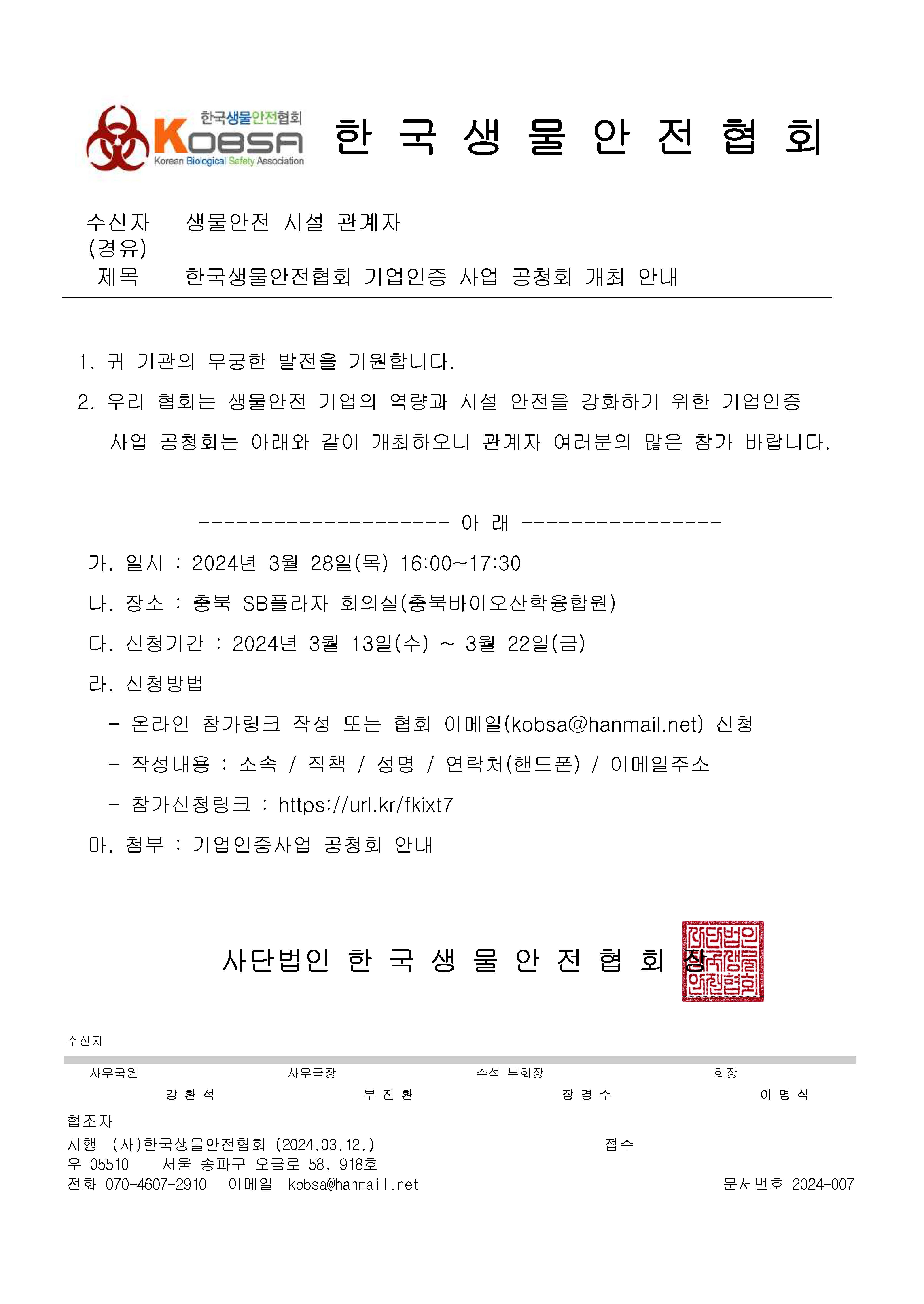 - 2024.03.28. 한국생물안전협회 기업인증사업 공청회 안내.hwp