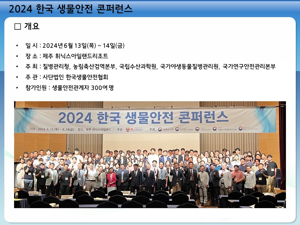 2024 한국 생물안전 콘퍼런스(6.13-14, 제주) 결과