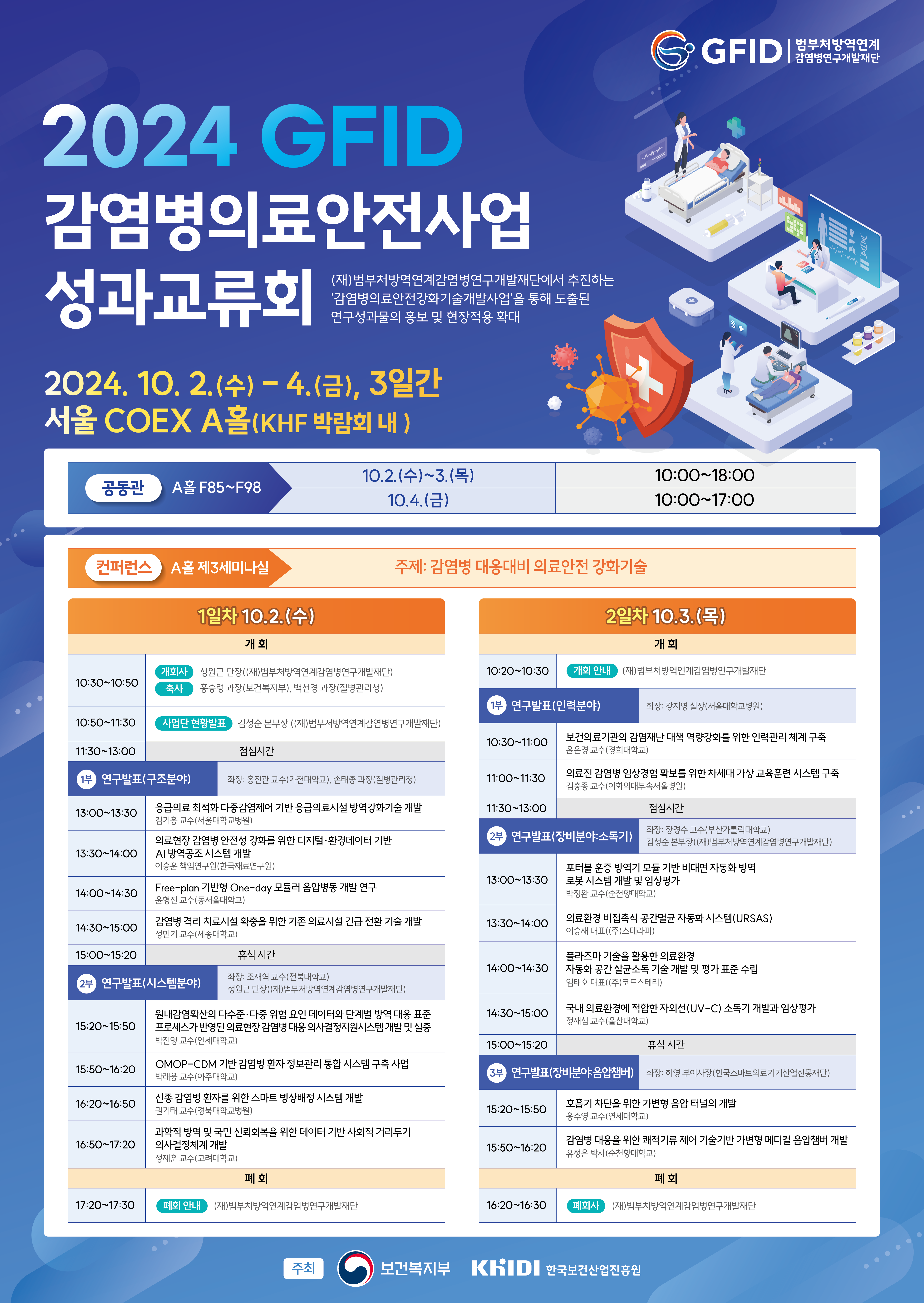 - 목적: 감염병의료안전강화기술개발사업에서 도출된 다양한 연구성과물에 대한 기술 교류 및 홍보