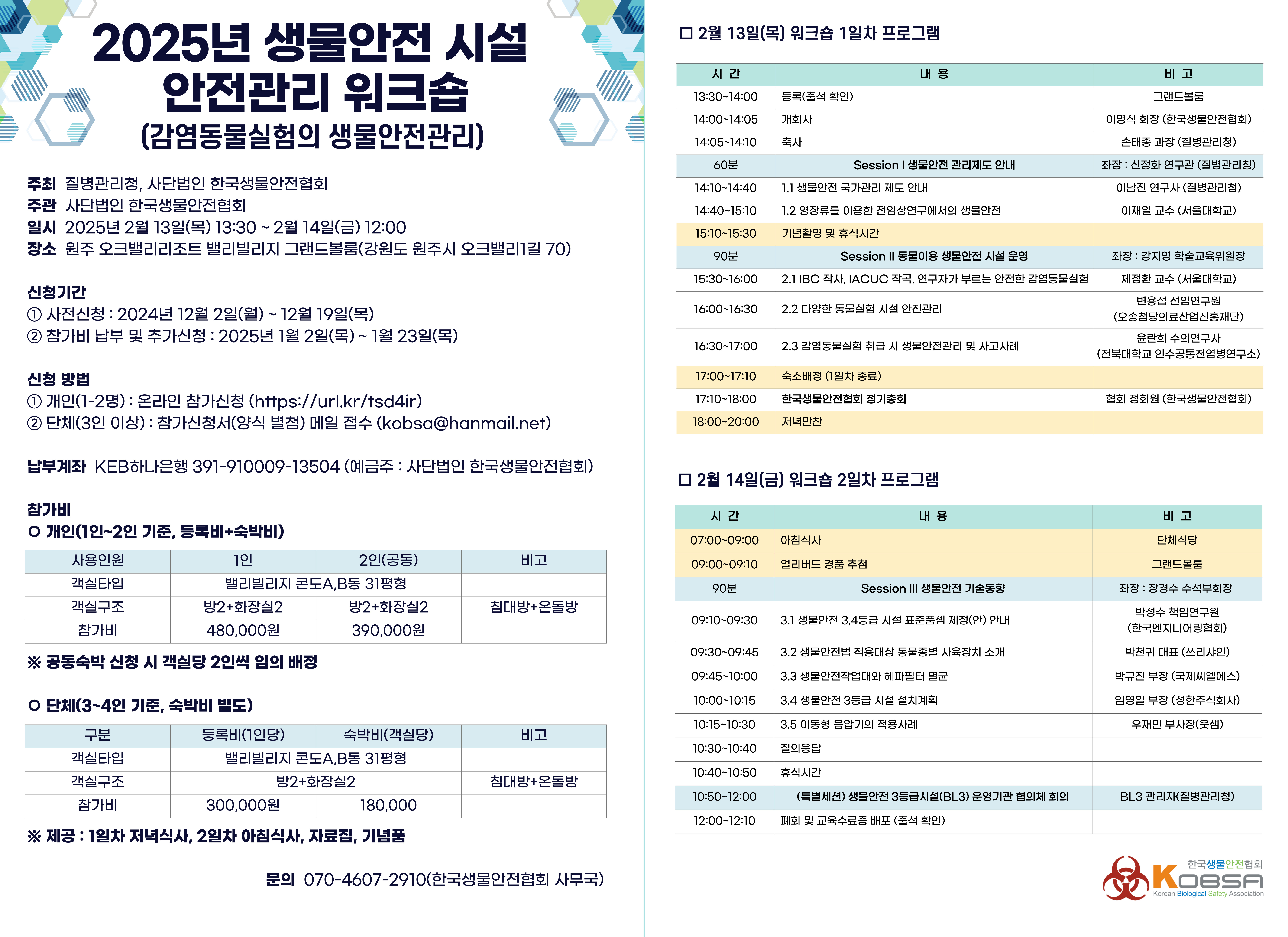 2025년 생물안전 시설 안전관리 워크숍 기업광고 안내