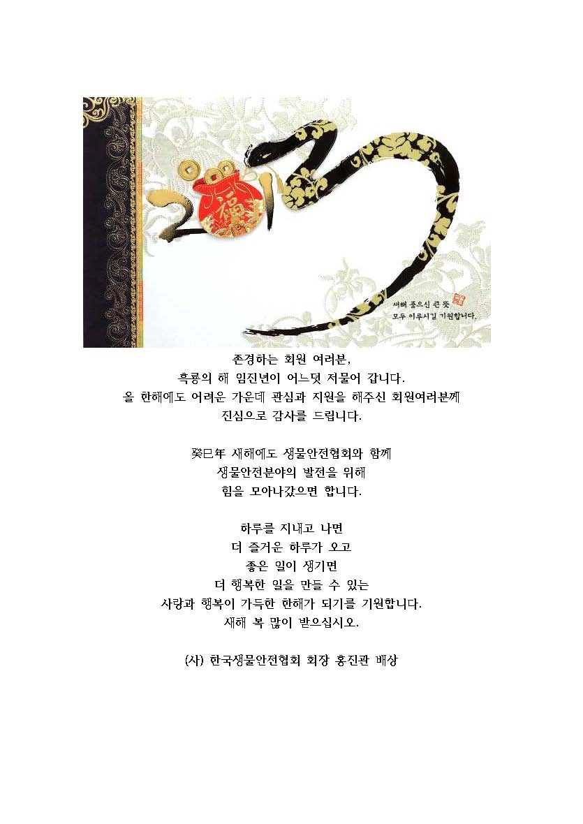 한국생물안전협회 홍진관회장님의 2013년 신년 인사입니다.