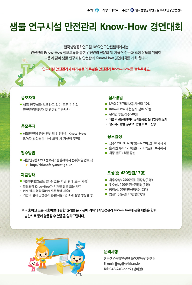 생물 연구시설 안전관리 Know-How 경연대회 안내 작성자 KOBSA 조회 2,468 작성일 2013-05-28 감사합니다 첨부파일 생물 연구시설 안전관리 Know-How 경연대회 안내.jpg 이전글 다음글 목록